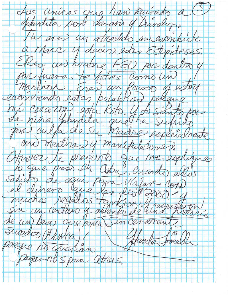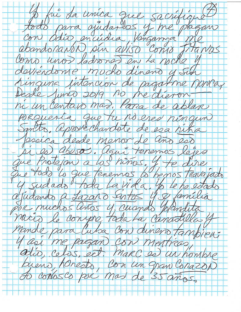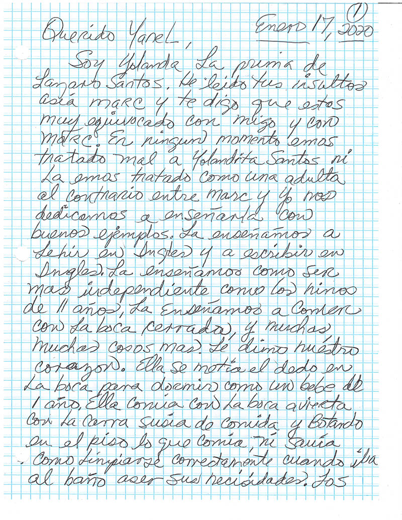 dinners for a long time. She paid for his car insurance that he never paid her back. They treated us like we were pedophiles, trying to hurt little Yoly.