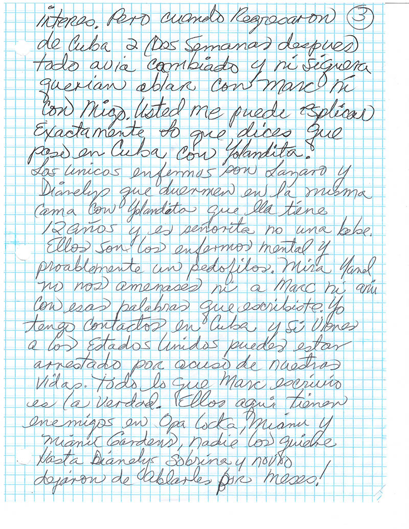 bad intentions on your parents's part. Everything was fine until they went to Cuba. It seems Yoly wanted to kiss me on the lips