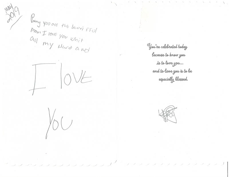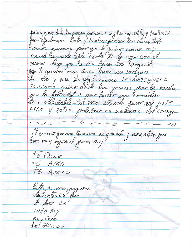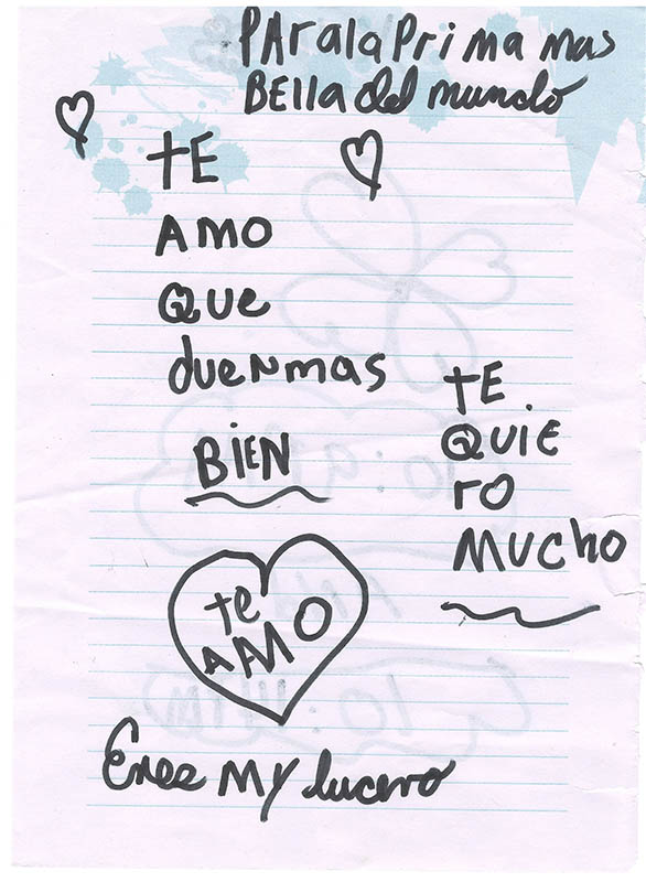 I didn't get many love notes, because she was always with me -I was all she had after school- expressing her love in spoken words or with all the selfies she took of us...
