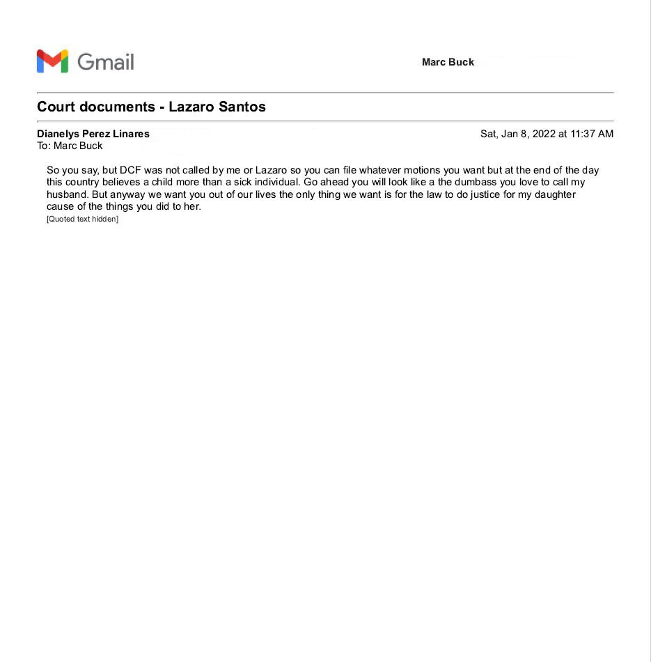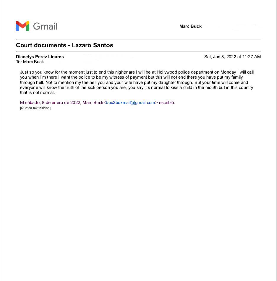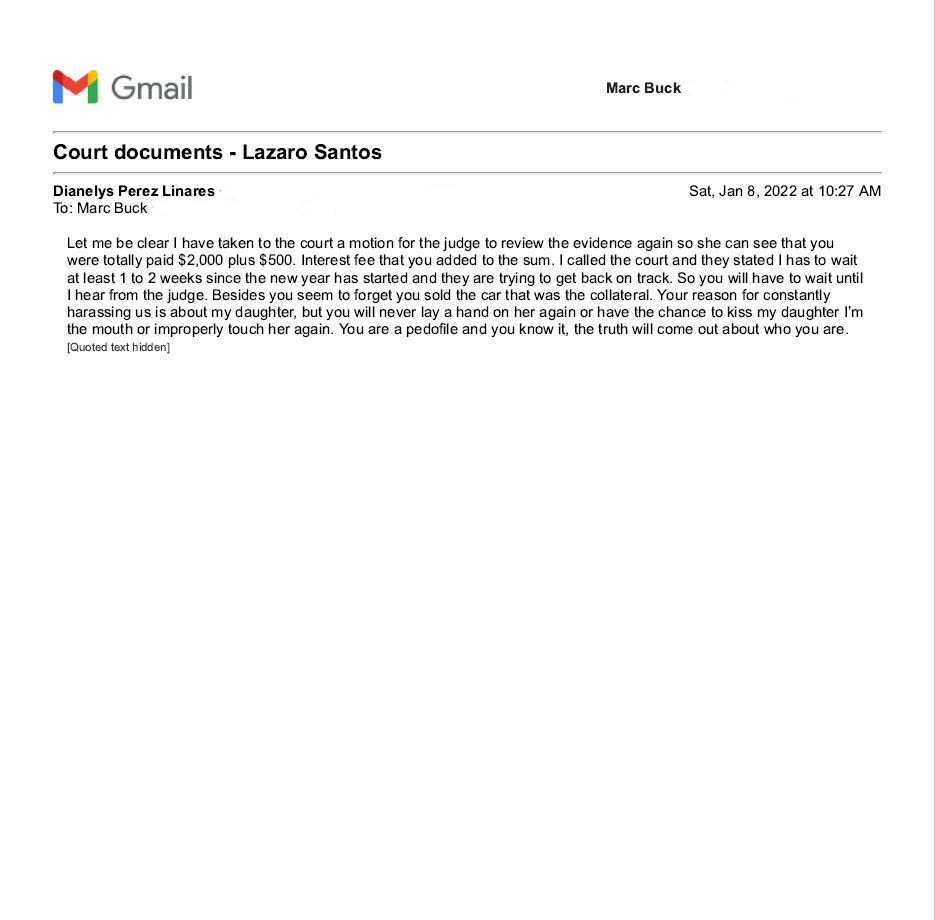 for some reason, and he begged her to dismiss the lawsuit. Apparently, Lazaro told him that he really didn't