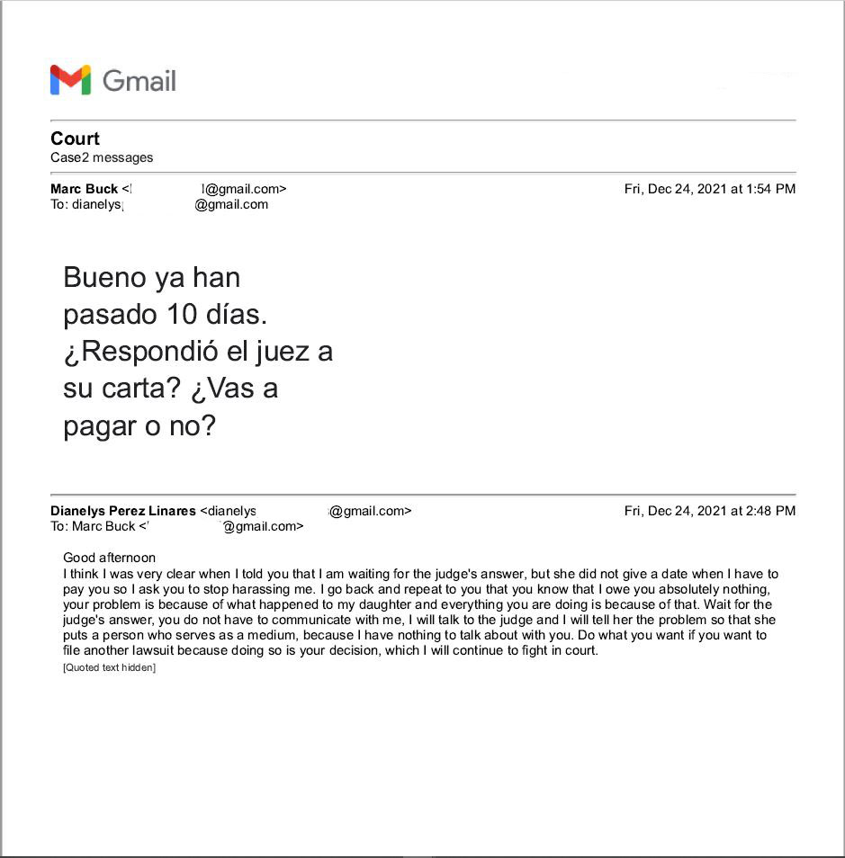 With that, she responded that she wrote the judge a letter —the one above— and she would have to wait 7 days to get an answer as to whether she has to