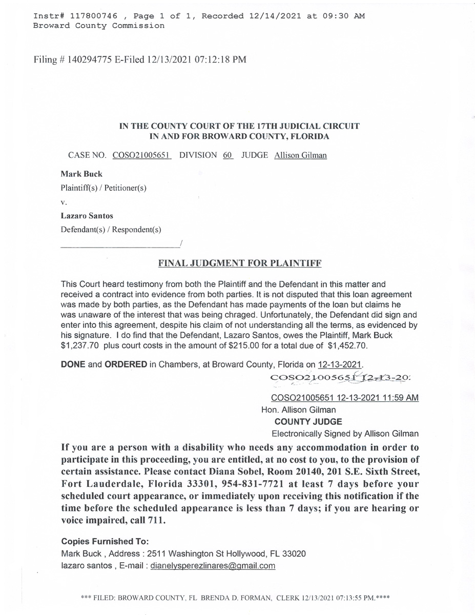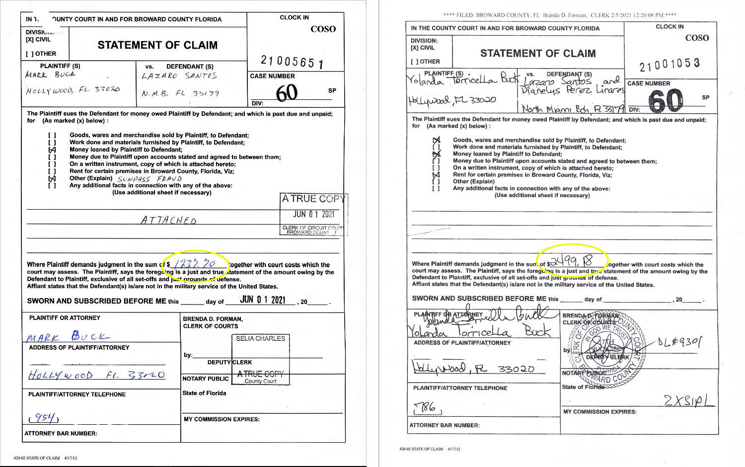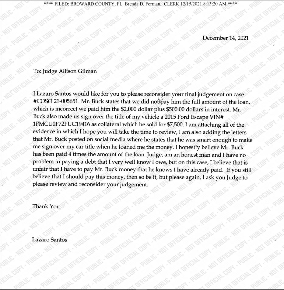 In the meantime, today I filed my own Small Claim against Lazaro for the original Cuba Loan