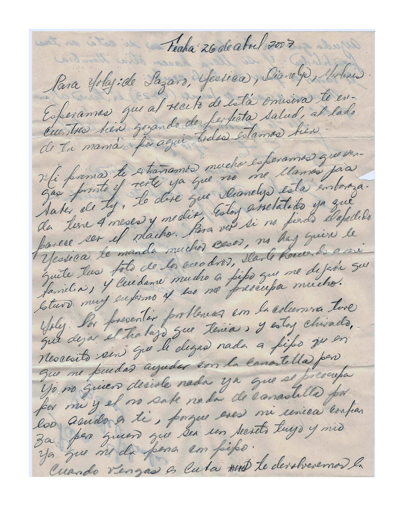 Yolanda revealed to me a few days ago that just before little Yoly was born, Lazaro the bozo sent her a letter —he had been sending a lot of