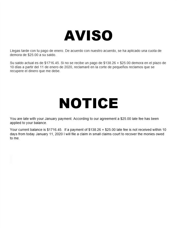 morning —because they have blocked me on their phone— giving them 10 days to make a payment before I file a court claim. I
